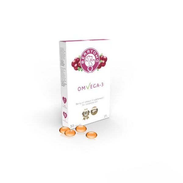 BerryOmg OMvEGA-3 kapslid – oomega-3 toidulisand ilma kalaõlita. Toidulisand koerte naha ja karvkatte tervise heaks.